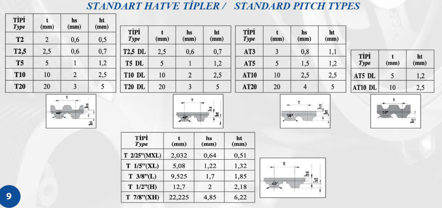 | HTD 5M / 8M / 14M | 5 / 8 / 14 | Çelik, Aramid (Kevlar) | Yüksek Torklu Sistemler |